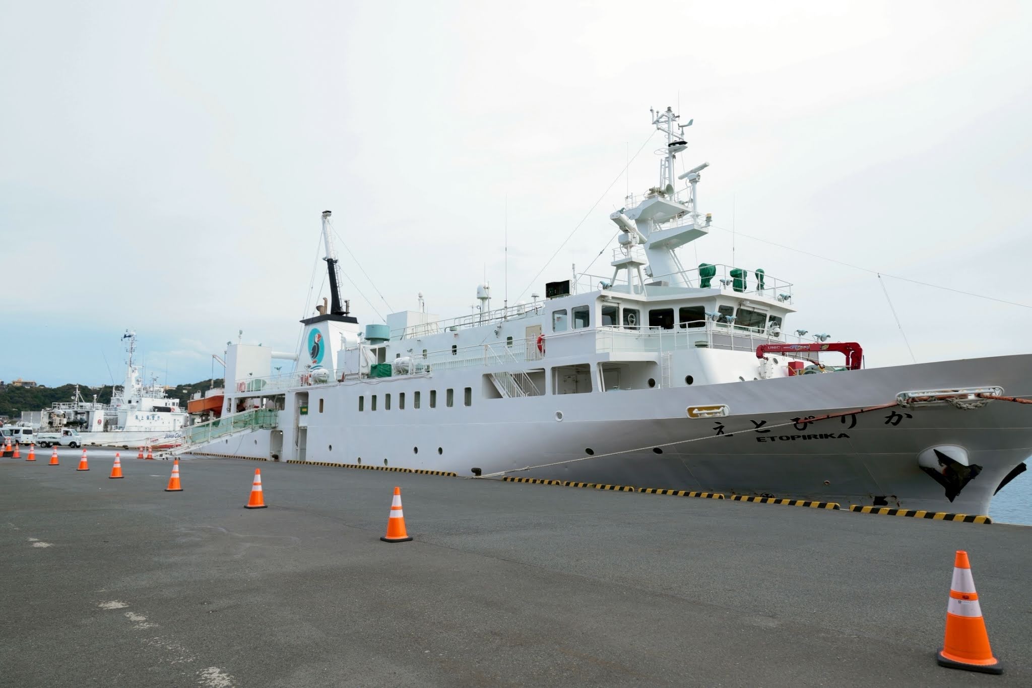 10月4日(土)&5日(日)の二日間、下田港外ヶ丘岸壁に帰港し一般船内見学を開催していた北方四島交流船「えとぴりか」へ移動し、蝶野正洋も「えとぴりか」船内見学。